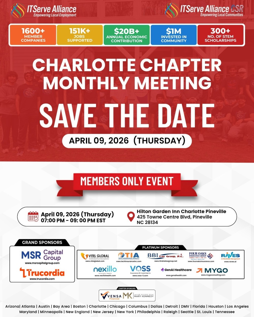 ITServe Alliance is inviting you to the Charlotte Chapter Monthly Meeting